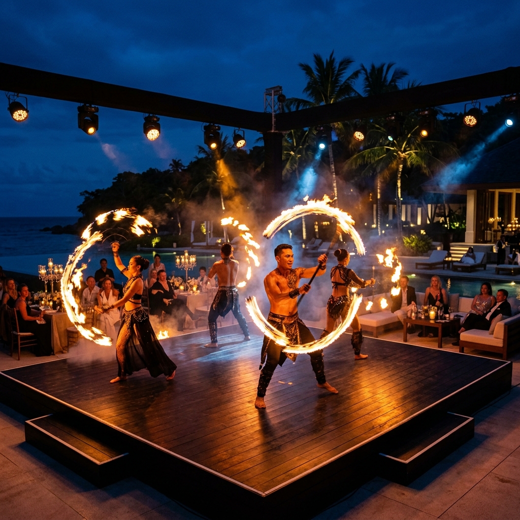 - Booking d'artistes : Cracheurs de feu, Acrobates, Magiciens